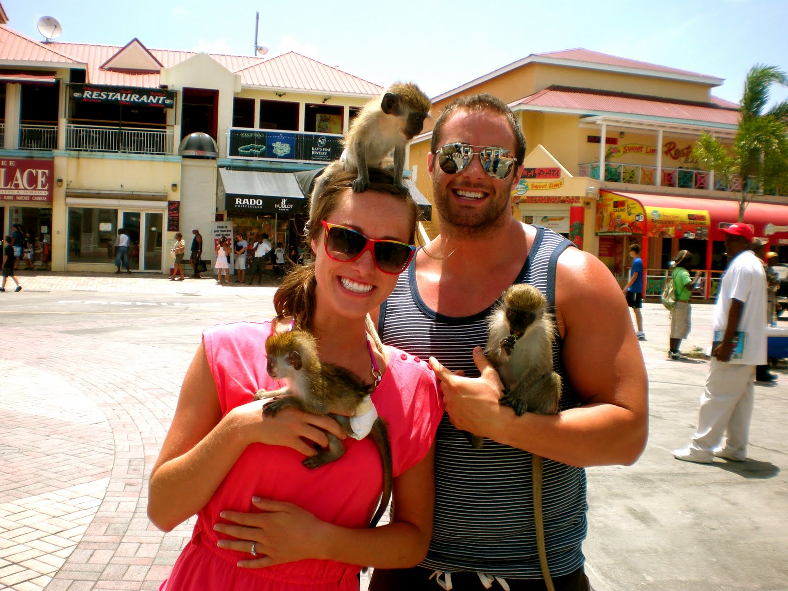 After we were done talking to the guy and holding them the Rasta Monkey man was all $10 per person. And we were like HECK no. We held them for 5 minutes and you never said to pay you so we only paid him like $3 just to be nice. So dumb. Think how much bank they get from all the tourists by just throwing these monkeys on people and then charging them? Crazy.